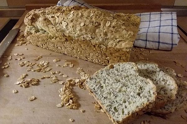 Die Kastenform kann auch vor dem Backen eingefettet und mit Haferflocken bestreut werden, so löst sich das Brot nach dem Backen leichter.