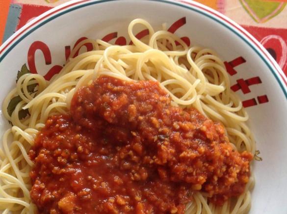 Spaghetti Bolognese ist eines der beliebtesten Nudelgerichte in Deutschland. Wir haben aber hier für sie ein vegetarische Variante, die bei uns im Kindergarten genauso gut von den Kindern angenommen wird wie die fleischige Variante:)